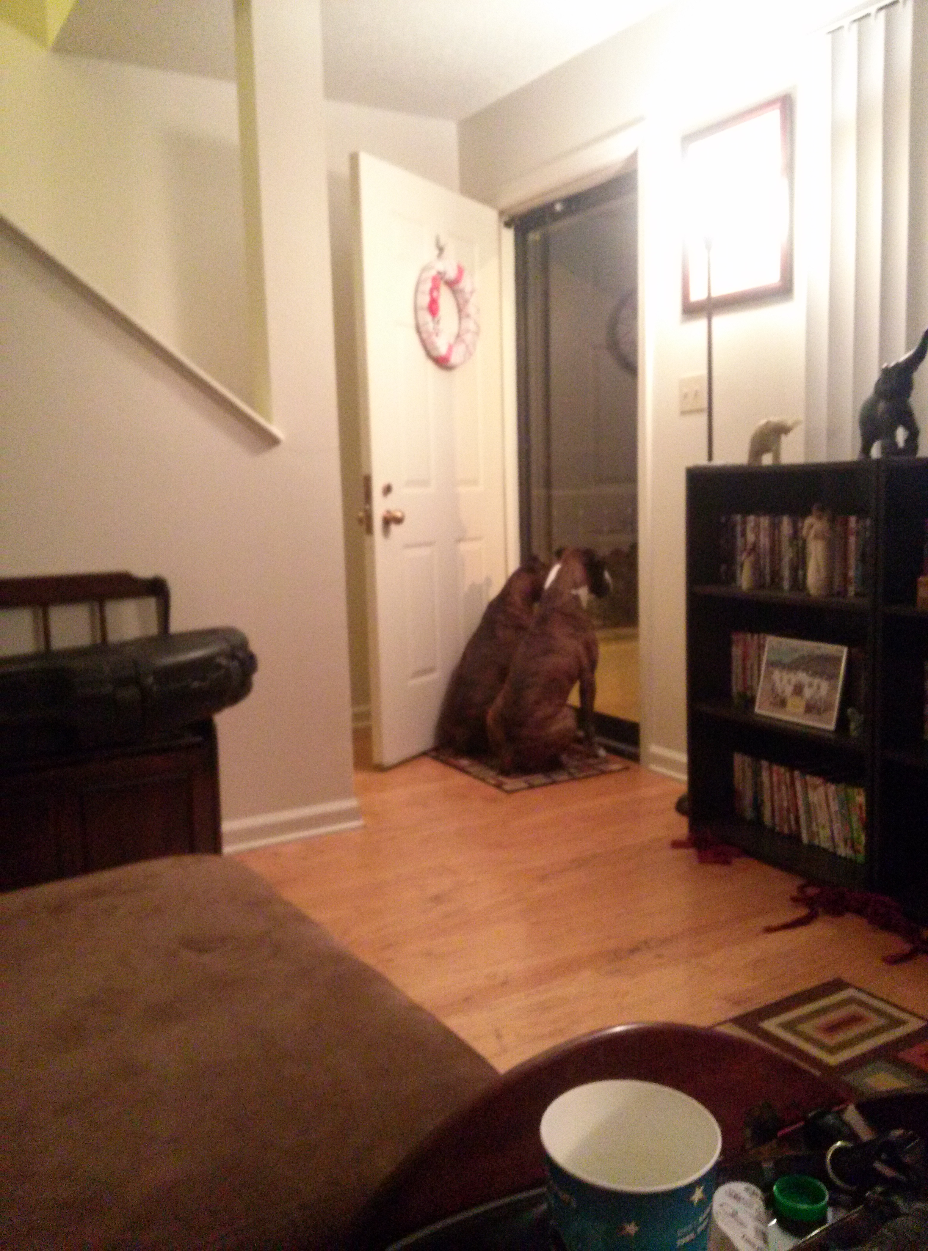 I have underestimated how big Crosby is though. He has a good 15/20 pounds on Grace. Yesterday I was playing around with them. Crosby attempted to give me hug, and I wasn’t ready for it and accidentally fell into our curtains in the second bedroom…pulling them down off the wall. Then he just slathered me with kisses as I laid there laughing.
