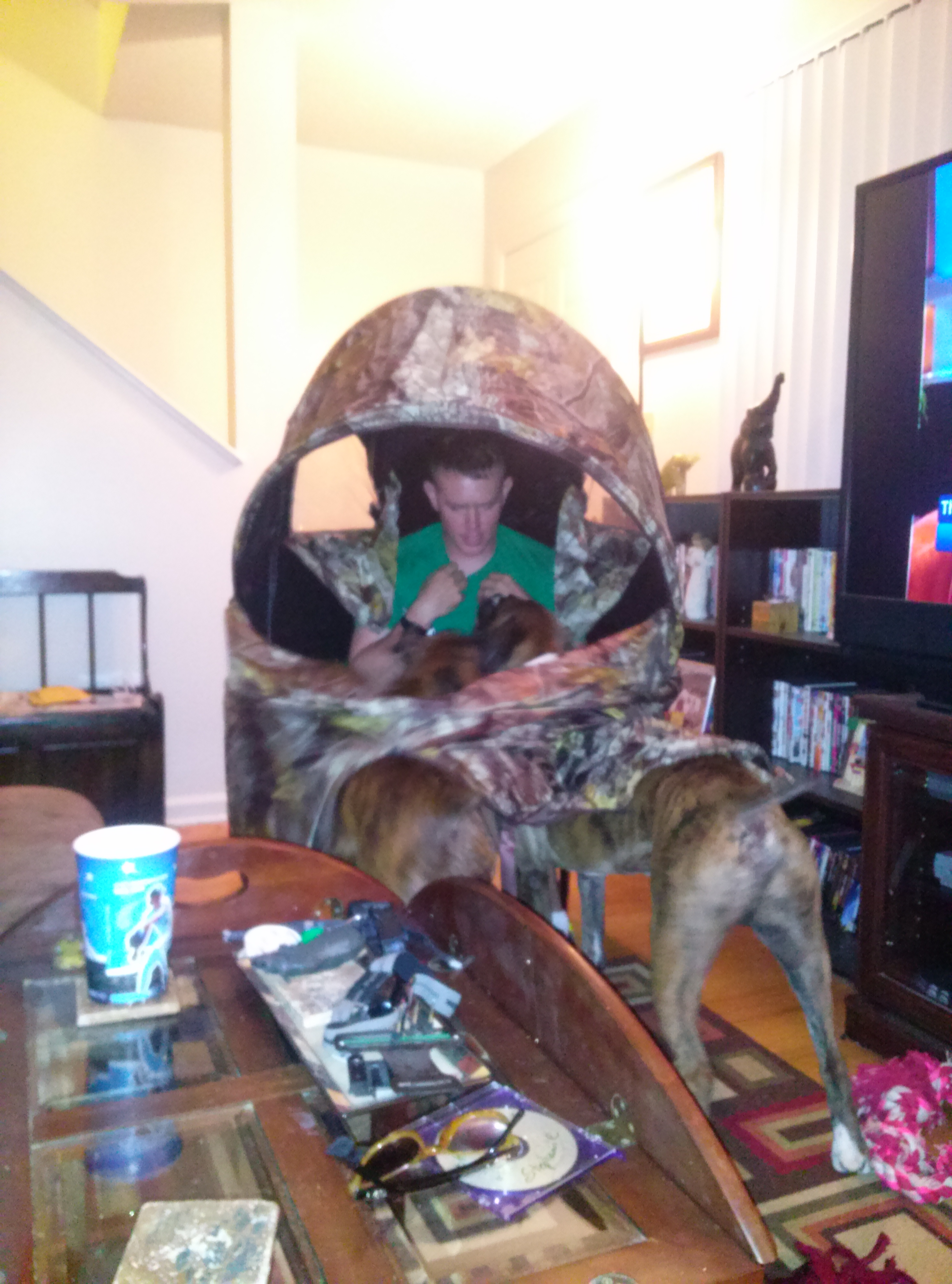 Tom is testing out all of his hunting gear, and the kids wanted to be involved.