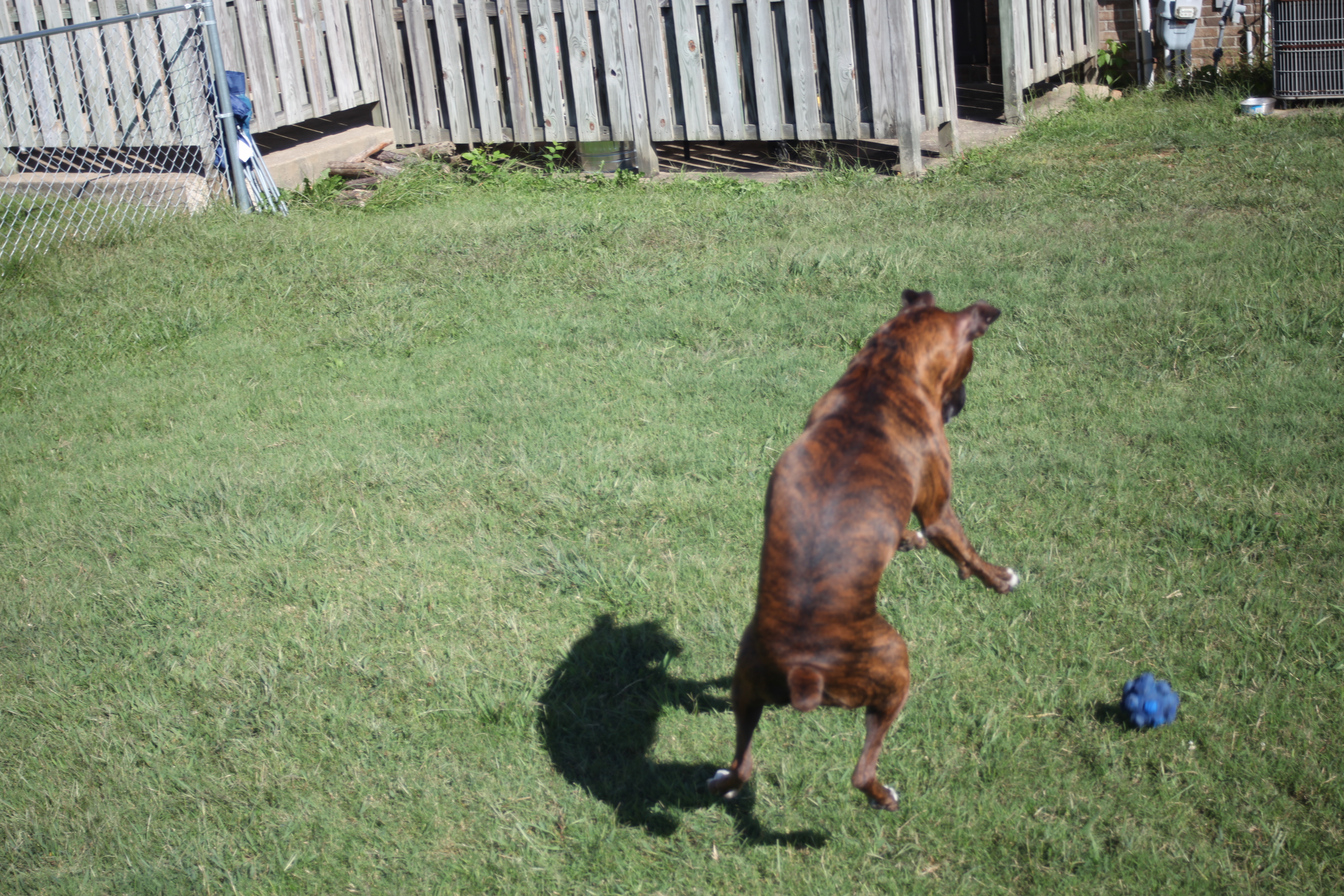 They have started playing tag with each other in the back yard. Grace is faster than Crosby, but she never actually picks up the ball. So he gets it every time and then they will chase each other around as Crosby throws it up in the air like he is playing monkey in the middle with her. One of these days I will get a good video of it.