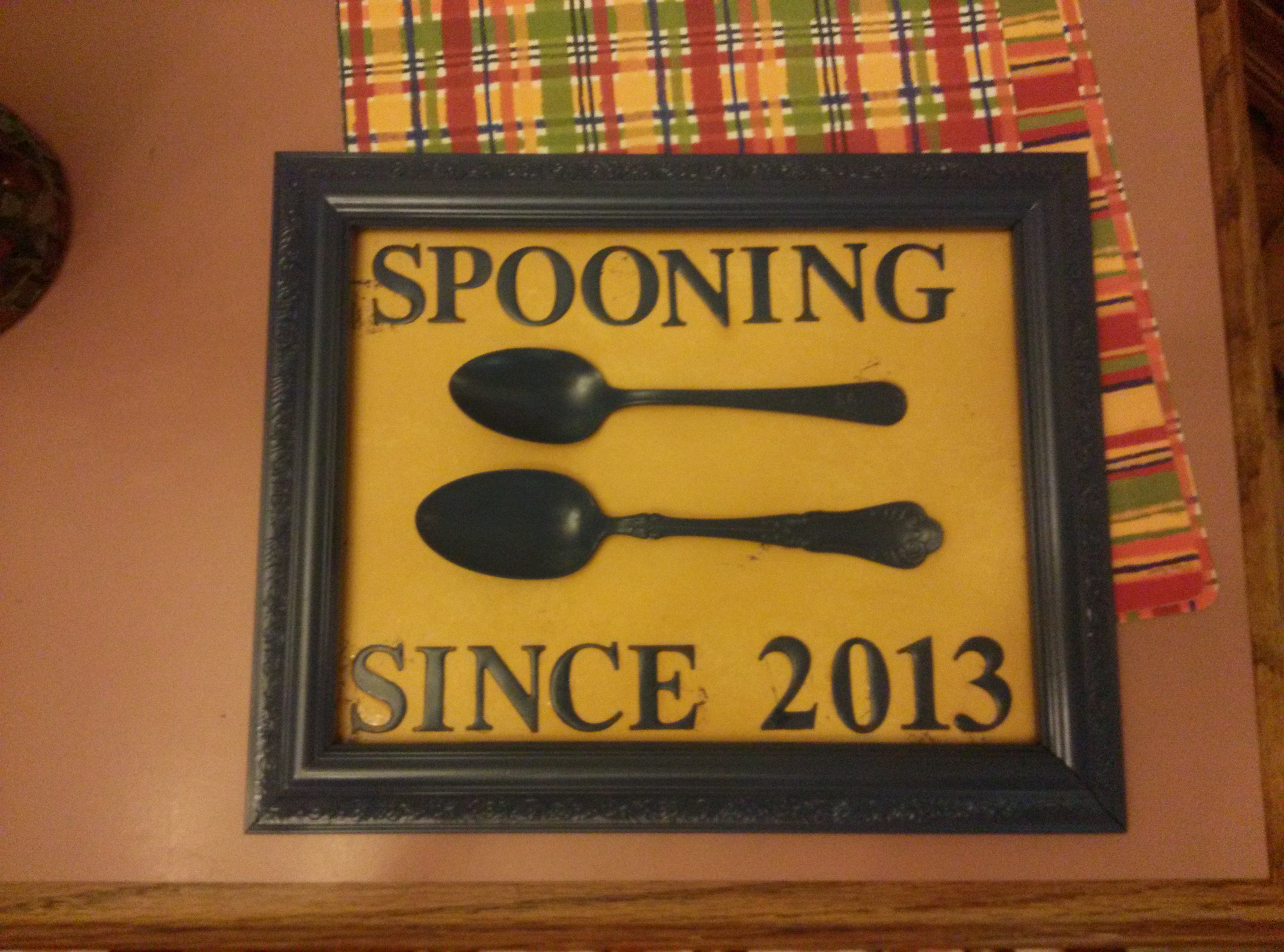 I got the spoons from a thrift store in town. It was fun digging through boxes of spoons trying to pick two that were different but yet similar (Much like a couple getting married. See what I did there?).