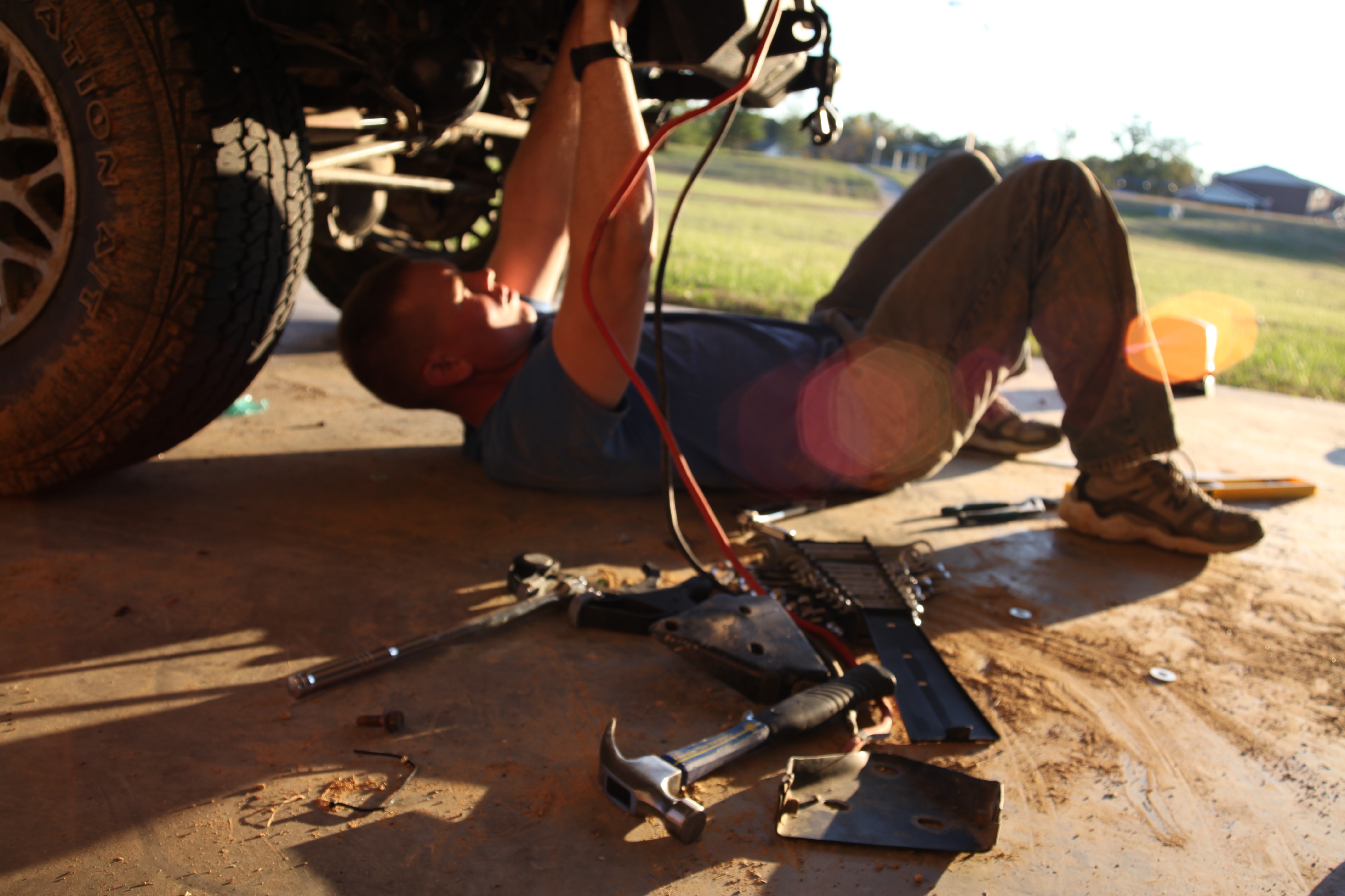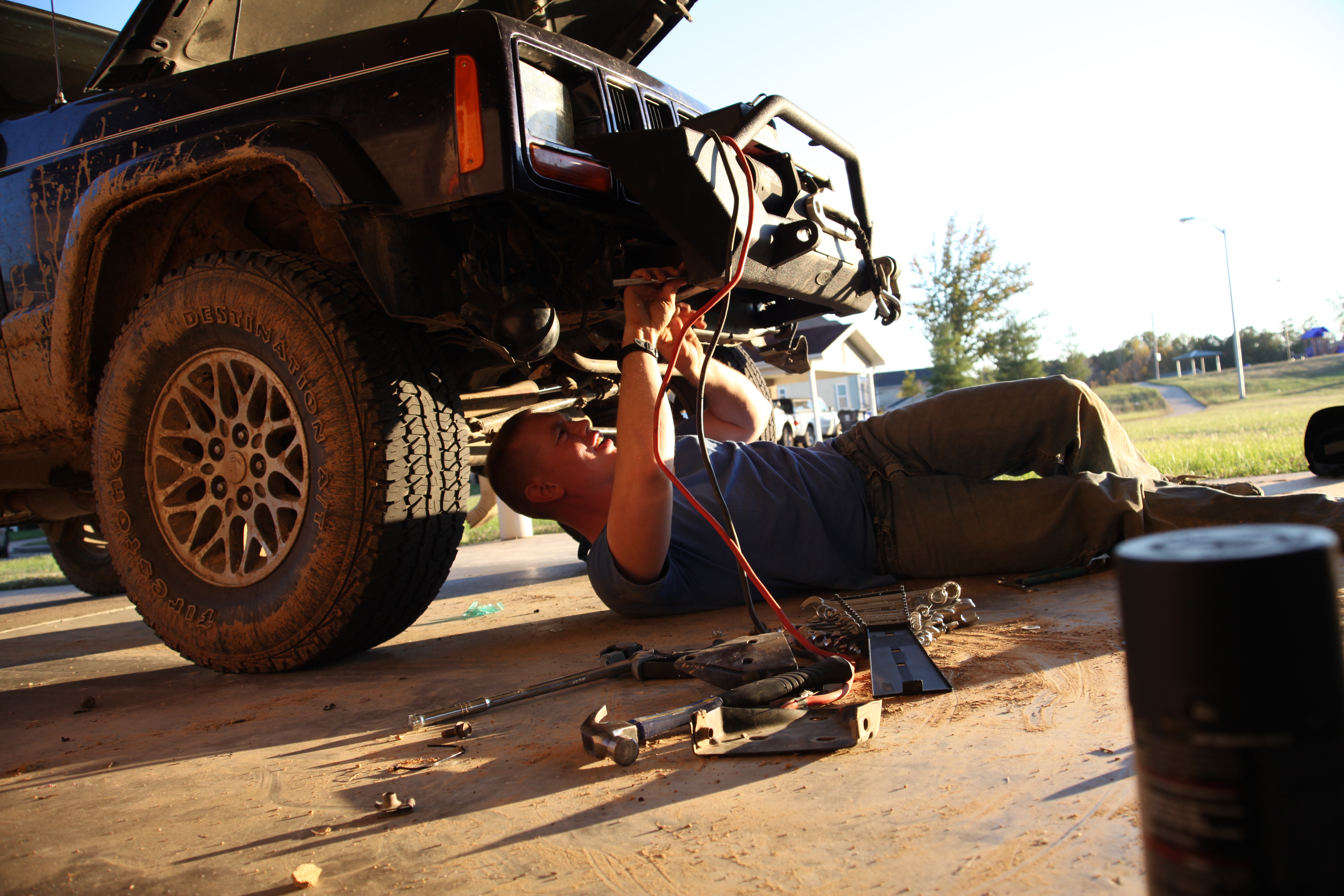 I came home that afternoon to Tom rebuilding his bumper…