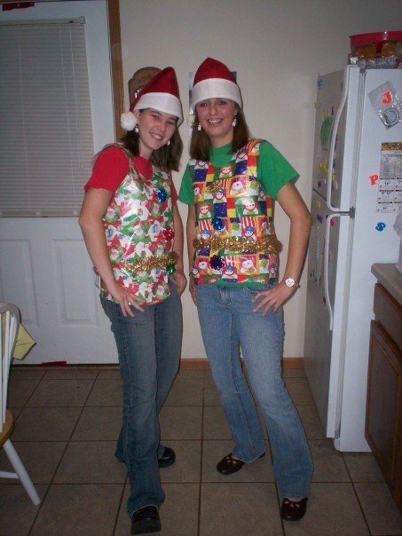 7. If given the opportunity would you participate in an “Ugly Sweater” party and what sweater would you wear? Peruse one on the internet or even in your own closet and show us! I have done several of these over the years. But I would have to say this is my favorite because my BF and I made them out of wrapping paper and tinsel…