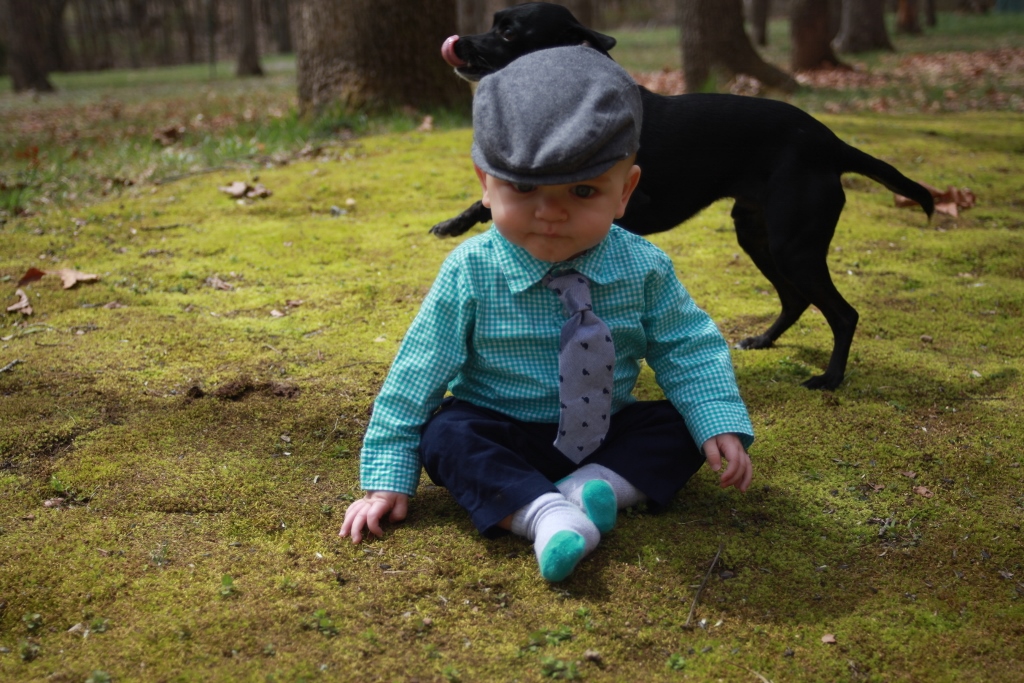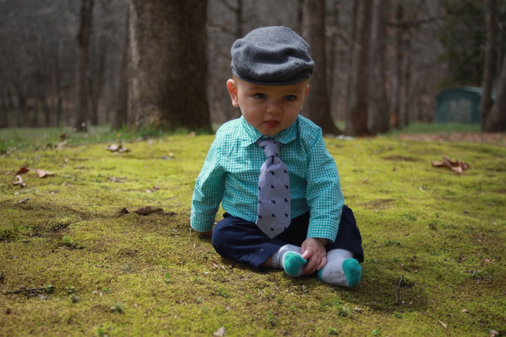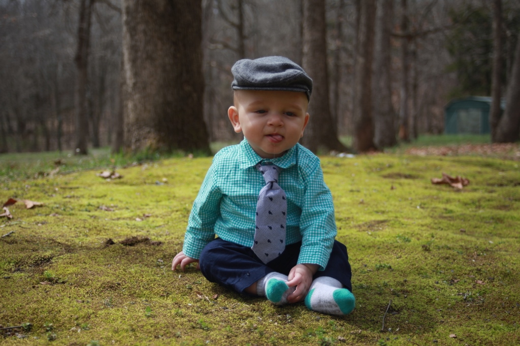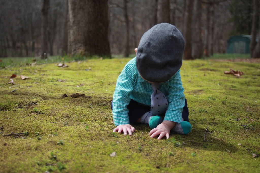 It’s hard to get a 7 month old to look at you. He has better things to do with his time. This was also his first time in grass/moss. (I actually really love this picture even though he won’t look at the camera.)