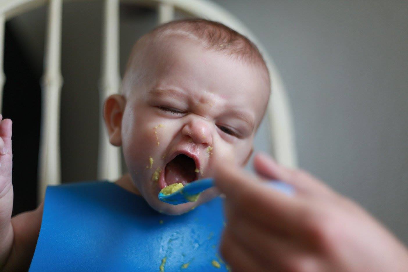 I have tried to do it right after he eats, but he usually is still mad that the meal is over. He is also a happy spitter (doctor’s words not mine). So if I do it after he eats, usually I am cleaning up more food spit than I am taking pictures.