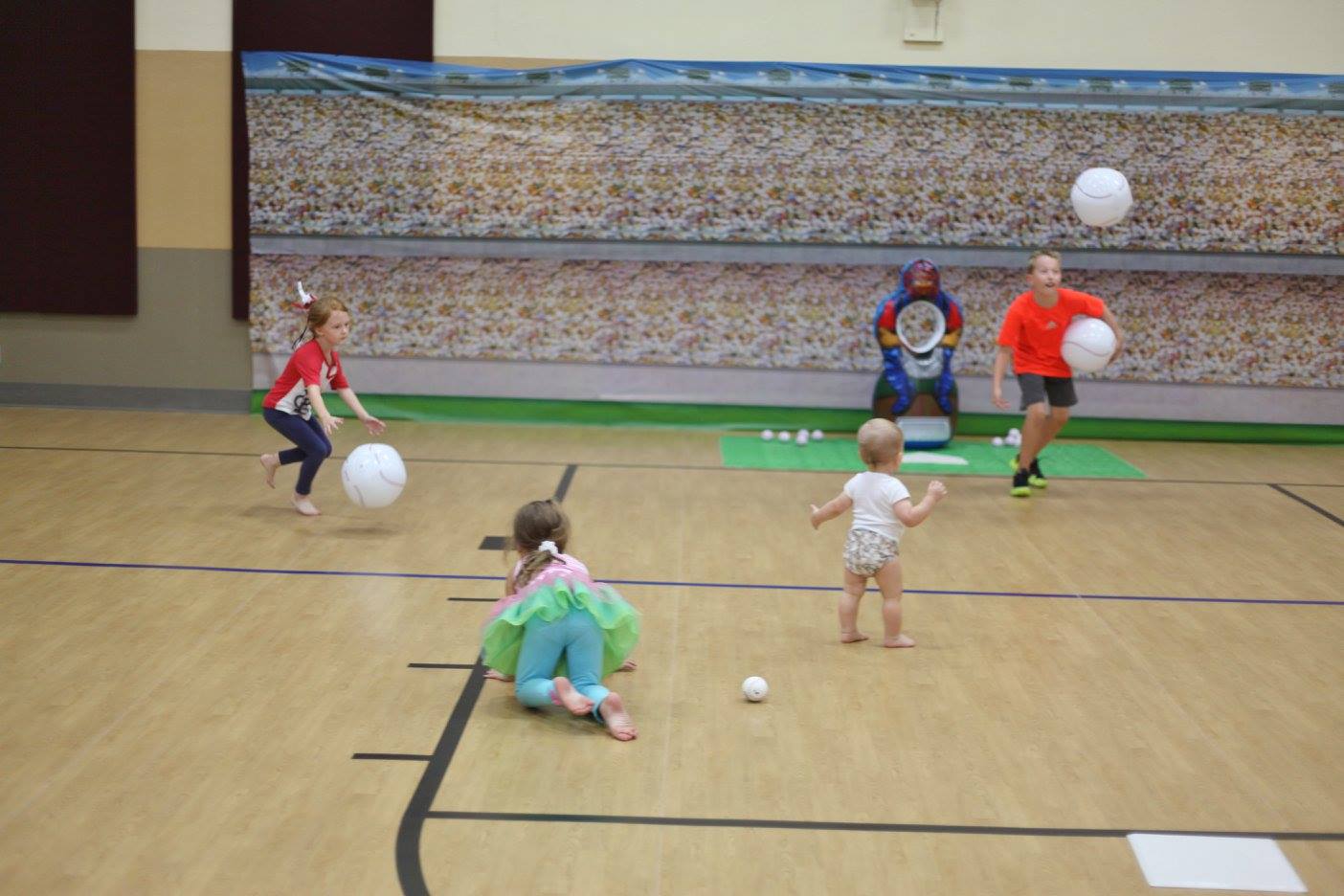 Since there are a lot of kids in our family, we knew we had to have something for them to do to get all the sillies out. So we had inflatable balls and bats just thrown all over the gym. They had a “ball.”