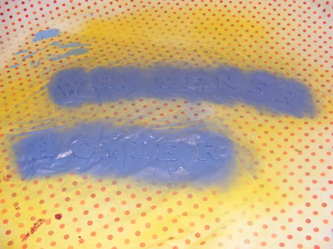 6. I put magnets on the back of each letter. You can buy magnet strip tape which may be cheaper than discs. I will probably have to go back and hot glue the magnets to the letter because the stickyness isn’t as great from the magnet tape.