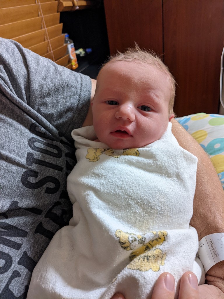 At 9:24 am, Walter was here: 7 lbs and 8 oz, 20 inches long.