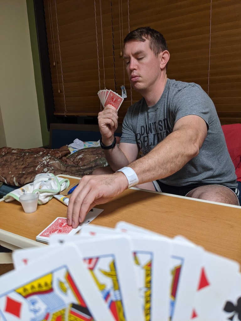 Rummy. We switched off sleeping to monitor Walt. He was gurgling after he was