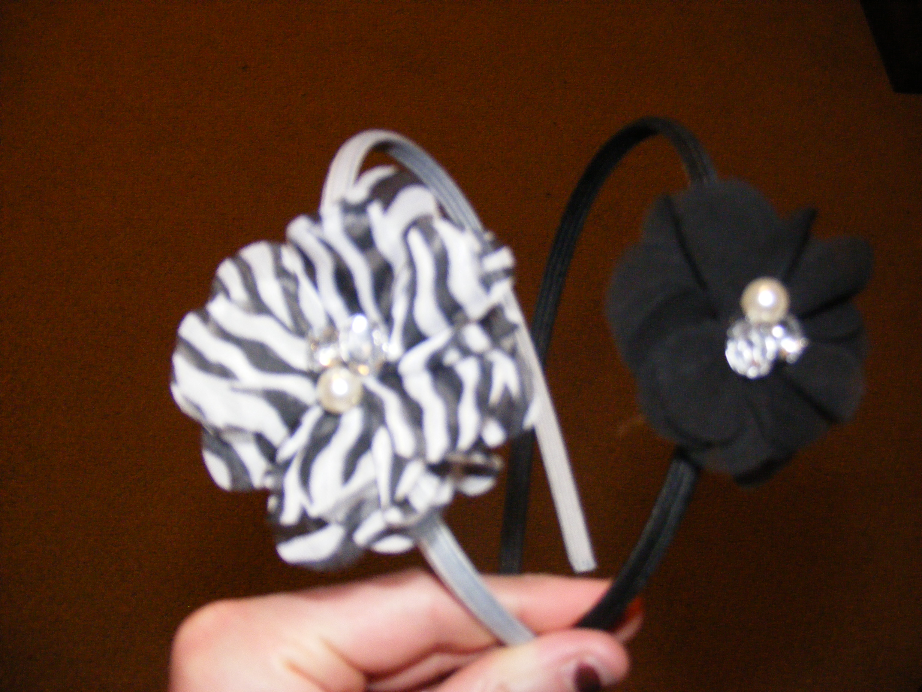 I had extra flowers so I made these too. It was cheaper to buy several flowers and headbands in packs than individual ones. Go figure.