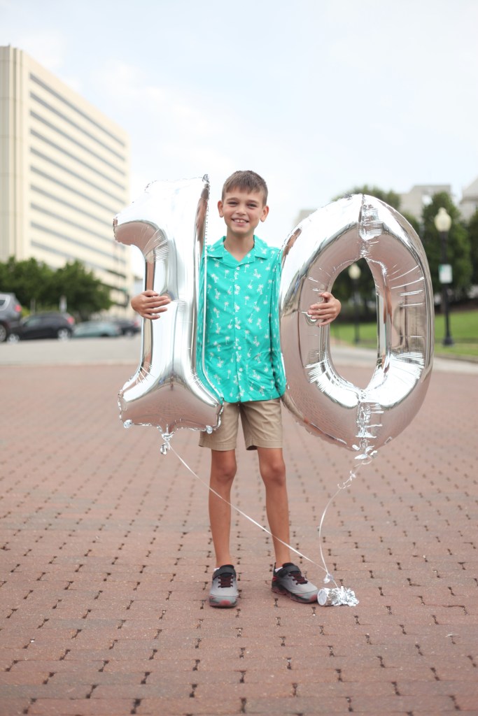 It is weird to say I have been a mom for a decade. George has taught me so much about love, forgiveness, being fearless, and enjoying the moments for what they are. He is the first to take a piece of my heart with him, and I just love watching him grow. He is so kind and funny. He wears his heart on his sleeve. He wants to know everything about everything, and he lives out being curious and not judgmental. He is a ray of sunshine who is as pure as he can be. He is really special, and it is a joy to be part of his world.