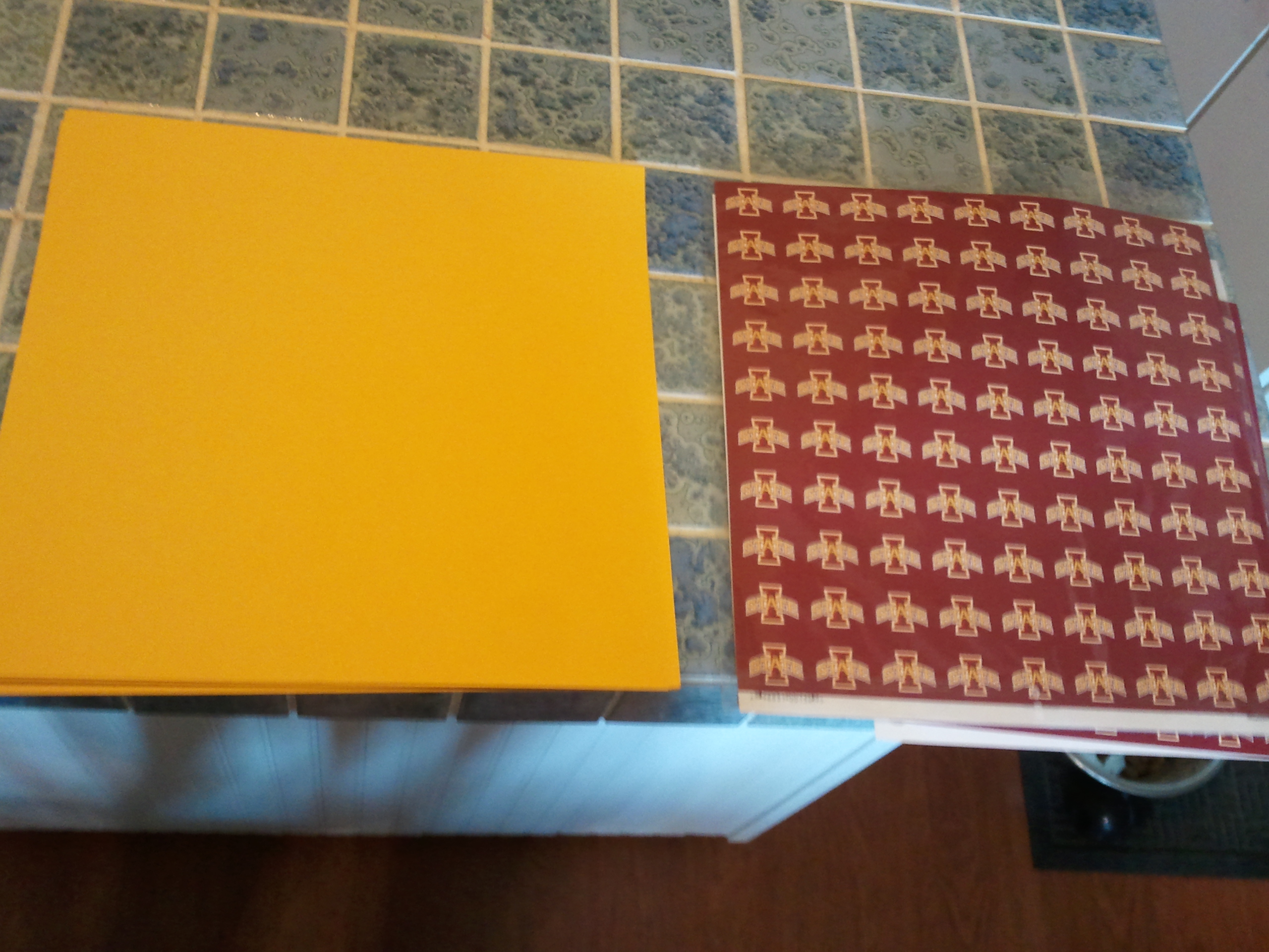 I was able to get tiles from the old dining center in our building from our facilities staff that were going to be thrown away. Then I got Iowa State scrapbook paper, yellow card stock, Iowa State stickers, felt stickers, mod podge and clear acrylic paint. Making some coasters!