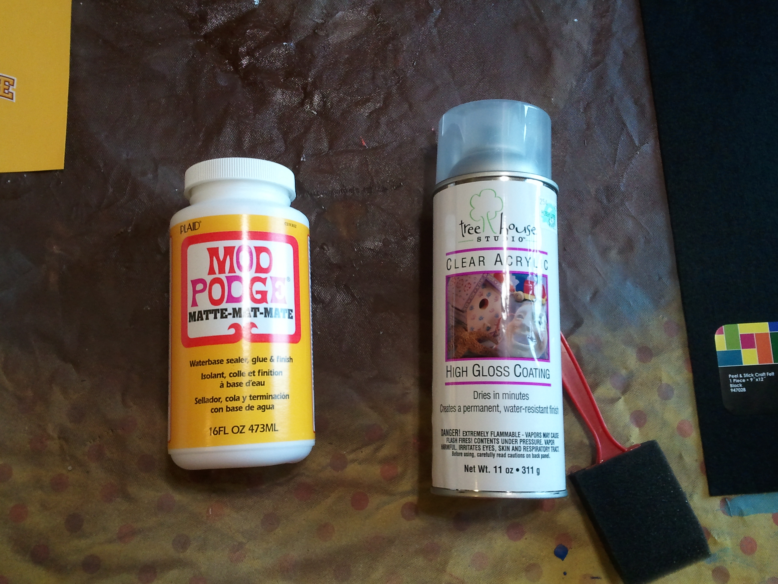 Once you have all the coats of mod podge done then you want to do a few coats of the acrylic clear coat which will make them waterproof, which as it turns out is really helpful for coasters.