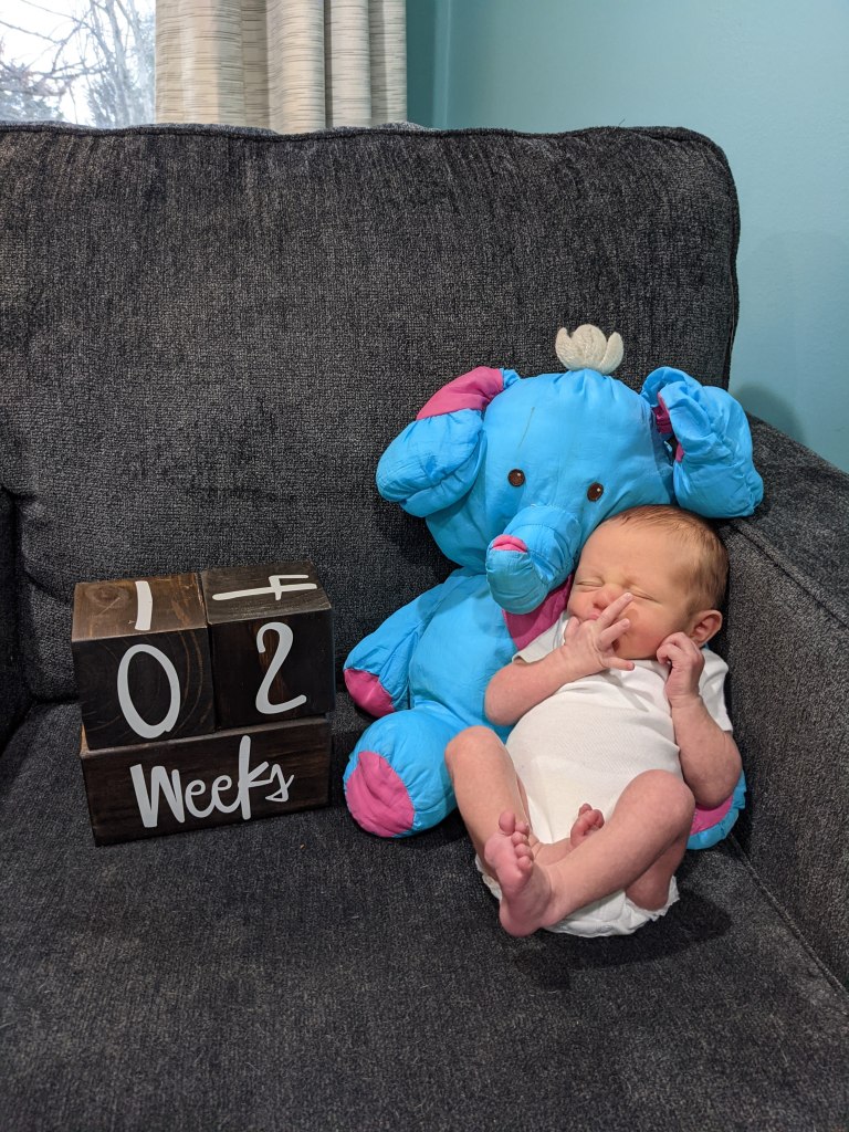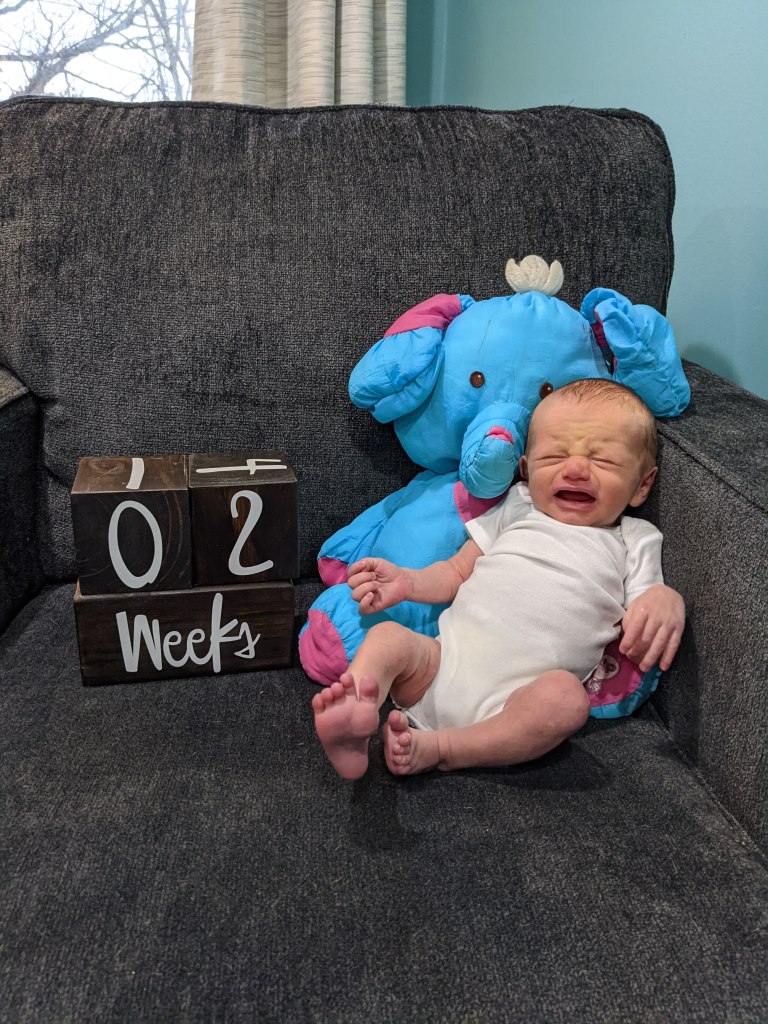 Sleeping: He is awake a little more now. He sleeps the best between 7am-noon. He is fussier in the afternoon an early evening. Night time has been hit or miss with what schedule he wants to be on. There seems to be no middle ground. Either is he cluster/comfort feeding all night or he stays asleep for 5-6 hours at a time. There have also been a couple nights that I have had to hold him while we sleep in a chair because even feeding him won’t console him.