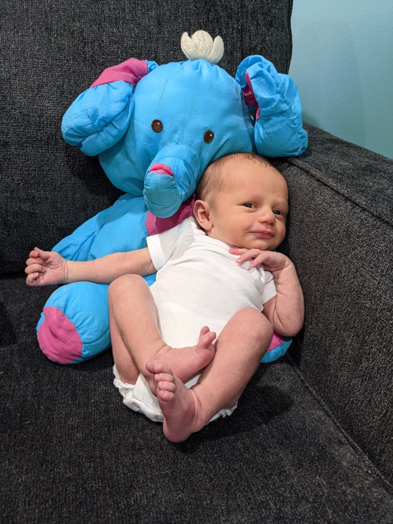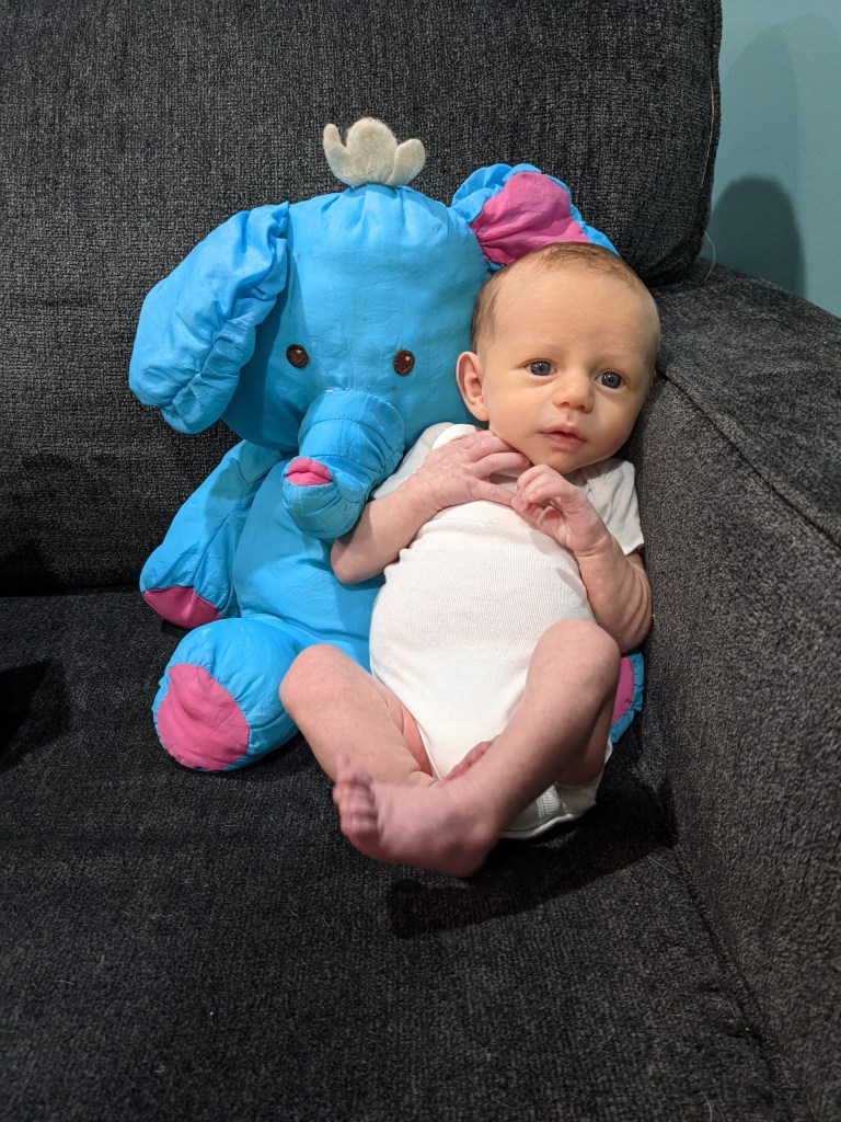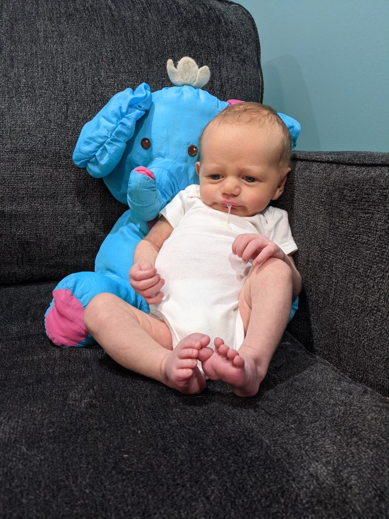 Diet: We made it a full month of only breastfeeding. We are still feeding every 2-3 hours, and he gets a couple 1 oz bottles between those feedings as well. I am pumping 3 times a days to meet those needs and still stock some up for when I go back to work. Essentially I am either feeding him or pumping every 1-2 hours. My goal is to make it to the next month and then reevaluate. If we are still on this schedule in a month, I may introduce formula. I really don’t have time to do much else besides focus on feeding him and trying to maintain some supply for him. At the current rate we are going, I am not sure this schedule will be sustainable for my health. It is utterly exhausting and draining in so many ways. I am struggling with this a little bit since I made it a full year with Daphne. I know it is not rational but my brain is saying you have made it a year before, and I am feeling this extreme guilt for even thinking about formula this early. Like some how I am failing Walt for not making this breastfeeding journey work for us, which is basically why I never leave this chair to make it happen right now. But as I said I do know from my experience with George that this is not sustainable for much longer, so we will continue to take a little bit at a time and reevaluate. I also fully believe in “fed is best” and really have no issue with formula; it’s just a debate I am internally struggling with because I have made it work before, and hormones are weird.